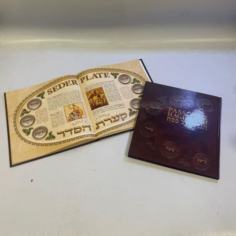 הגדת קערת הסדר בכריכה קשה מהודרת בעבודת יד, 120 עמודים.