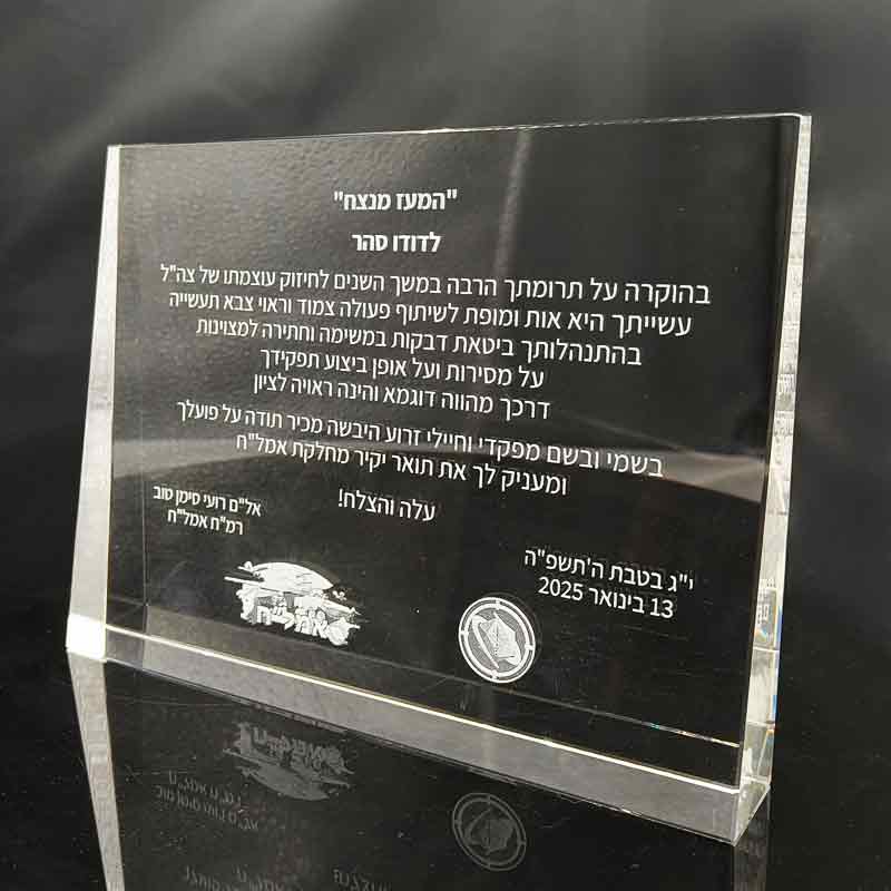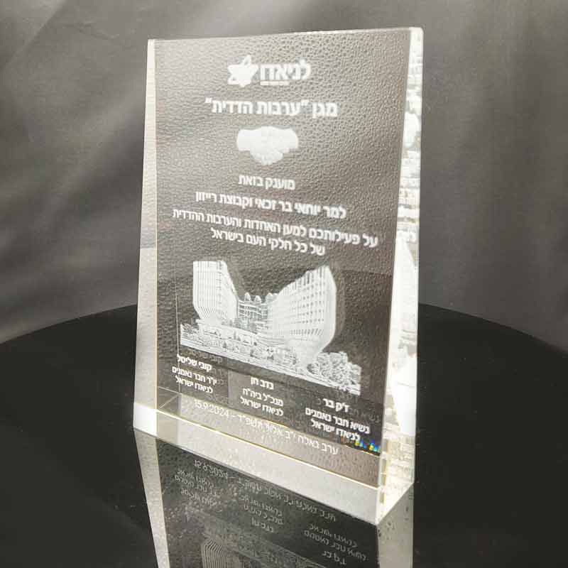 מגן הוקרה TRI זוויתי צריבת לייזר תלת מימד – עם אופציה לבסיס קריסטל